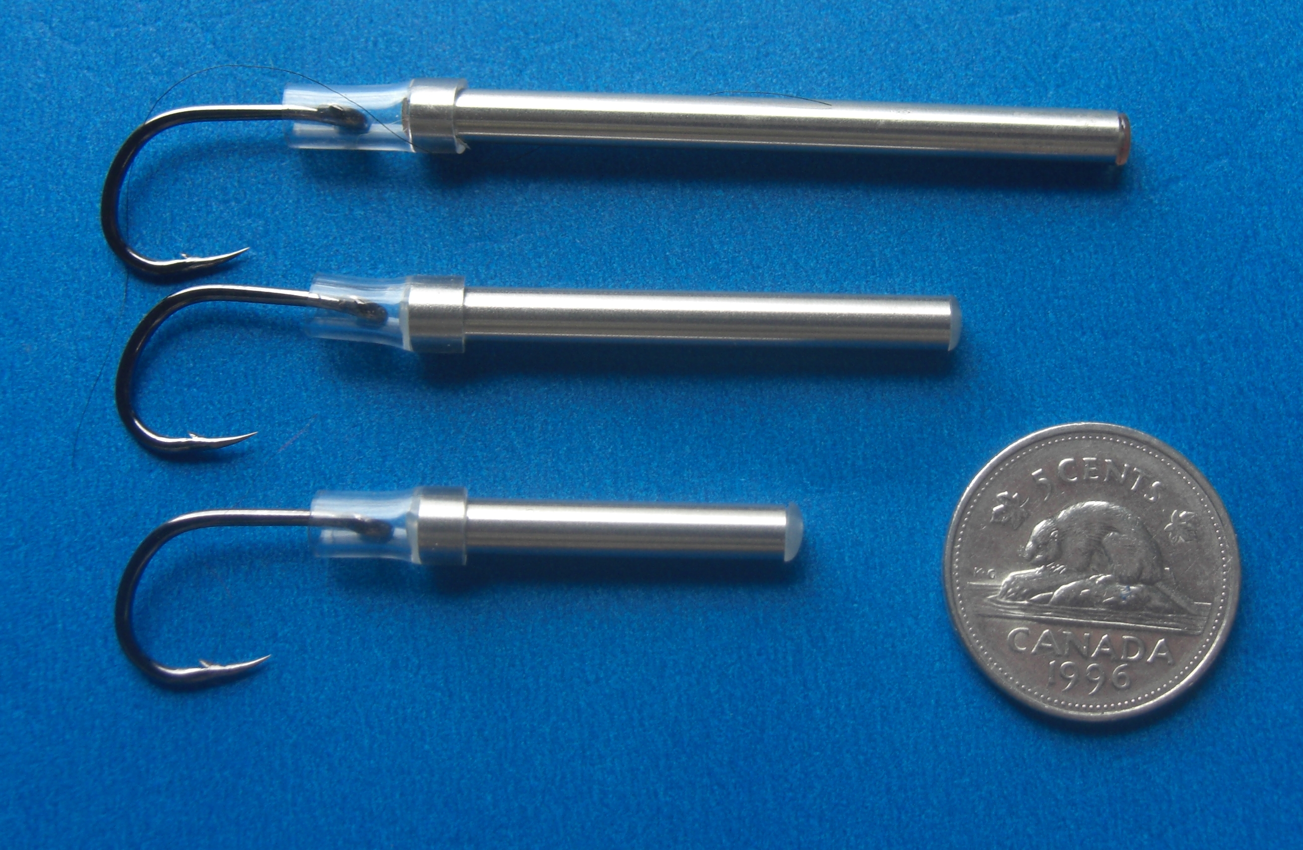 | Available in brass, aluminum, copper, and stainless steele tubes in two different diameters and three different lengths. These tubes are polished to a high gloss and come complete with clear plastic inserts. The inserts are easily melted in place with an open flame. The smaller diameter tubes are perfect for adding cones too....yet another way to control the sink rate of your favourite pattern! |