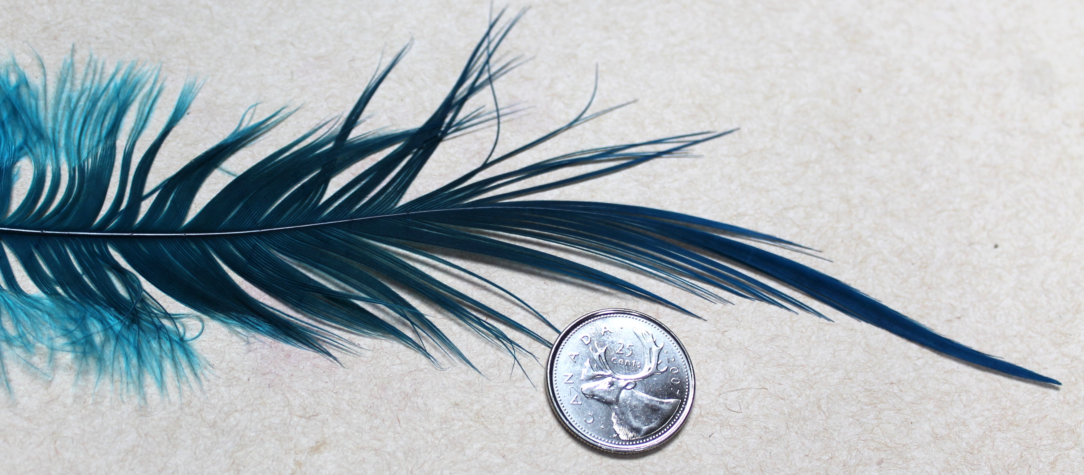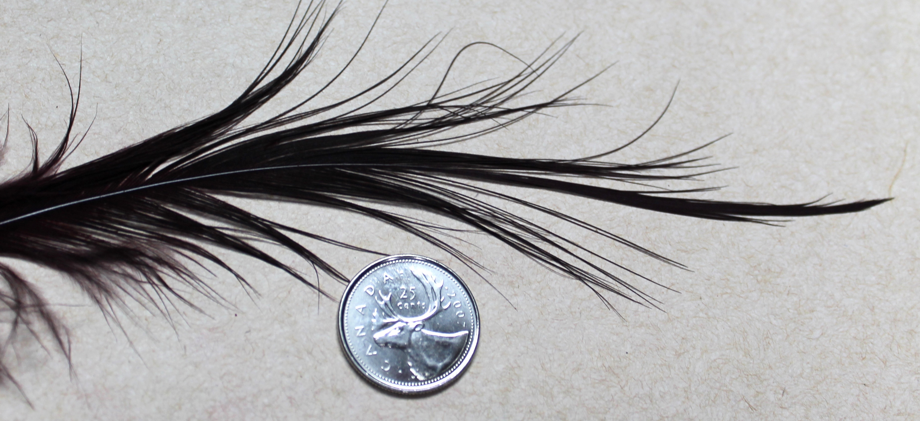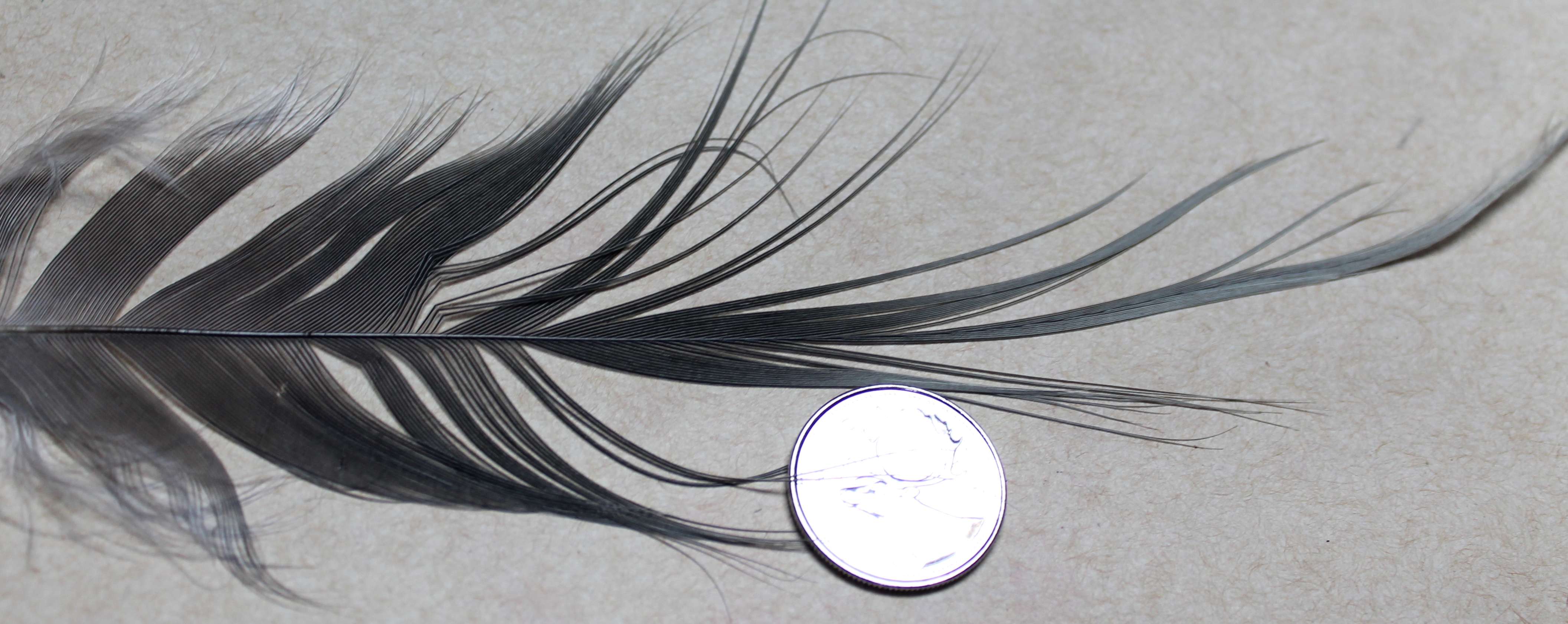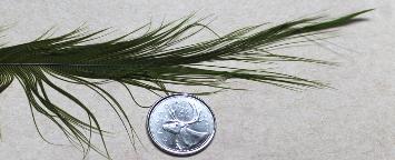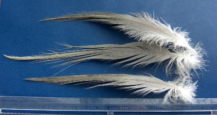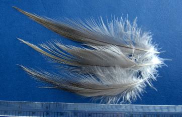| The Extra Large Gray Heron is so big that you can palmer a three inch long tube (above) from the back , all the way to the front, and still have enough for a few wraps at the collar. The three inch of tube covered was tied with only one of these fantastic plumes! |